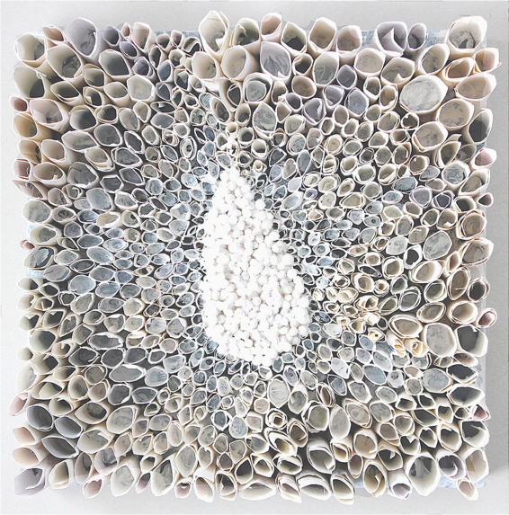 "Large Paper Centers 2017, Number One", 14" x 14"x 4"D, paper and cotton on panel, 2017.